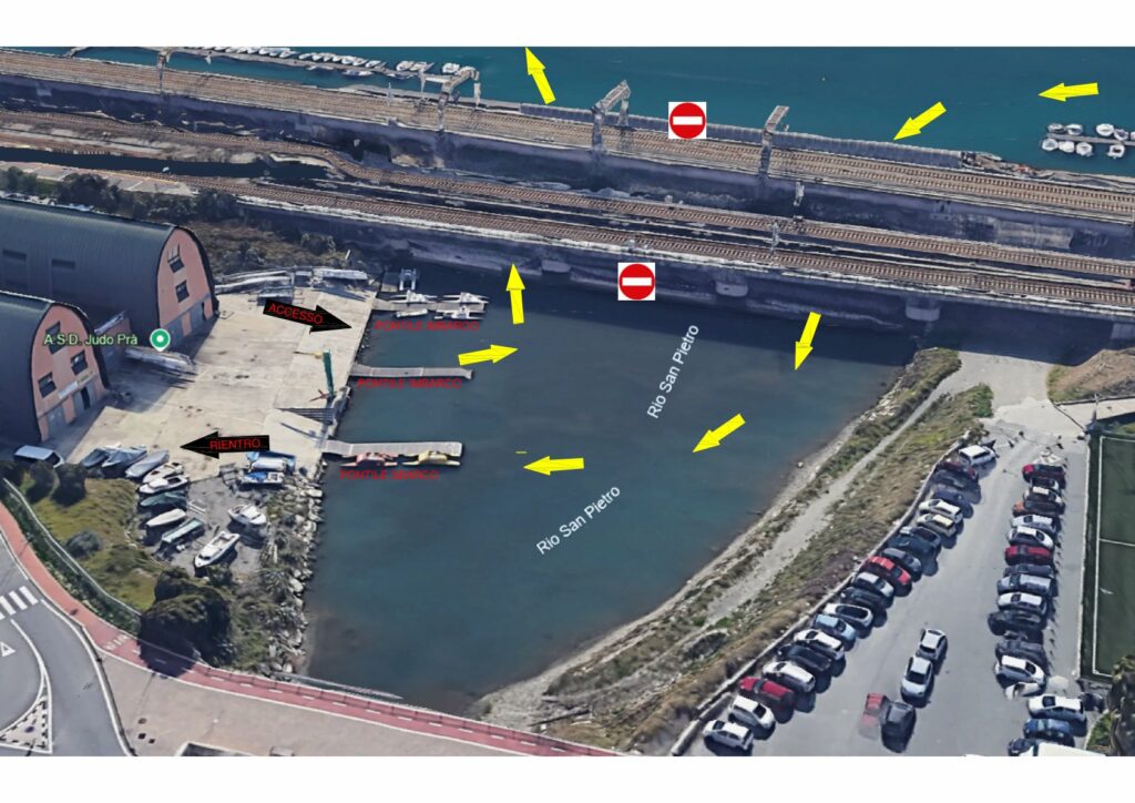 Mappa per accesso al campo di regata dai pontili di imbarco e rientro al pontile di sbarco