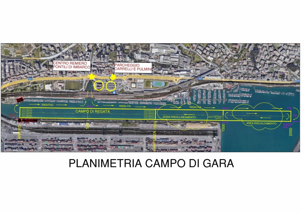 Planimetria campo di regata + area di preallineamento + area di riscaldamento